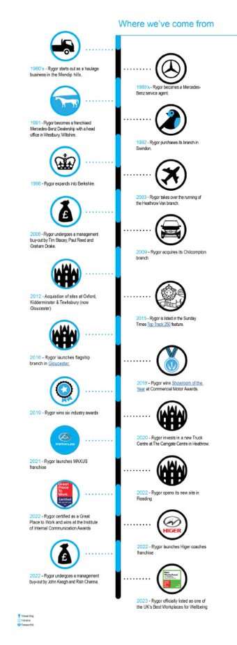 Having started life in the 1960’s as a family haulage business in the Mendips, Rygor Group originally became an authorised Mercedes-Benz repairer in the 80’s and became a full Dealer shortly afterwards.